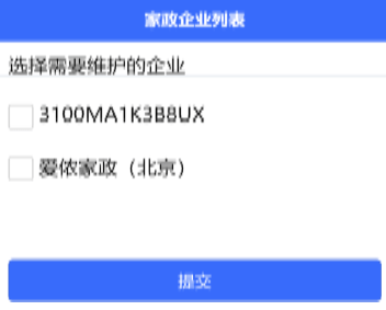 第一步:选择所属家政企业(可多选),点提交。
